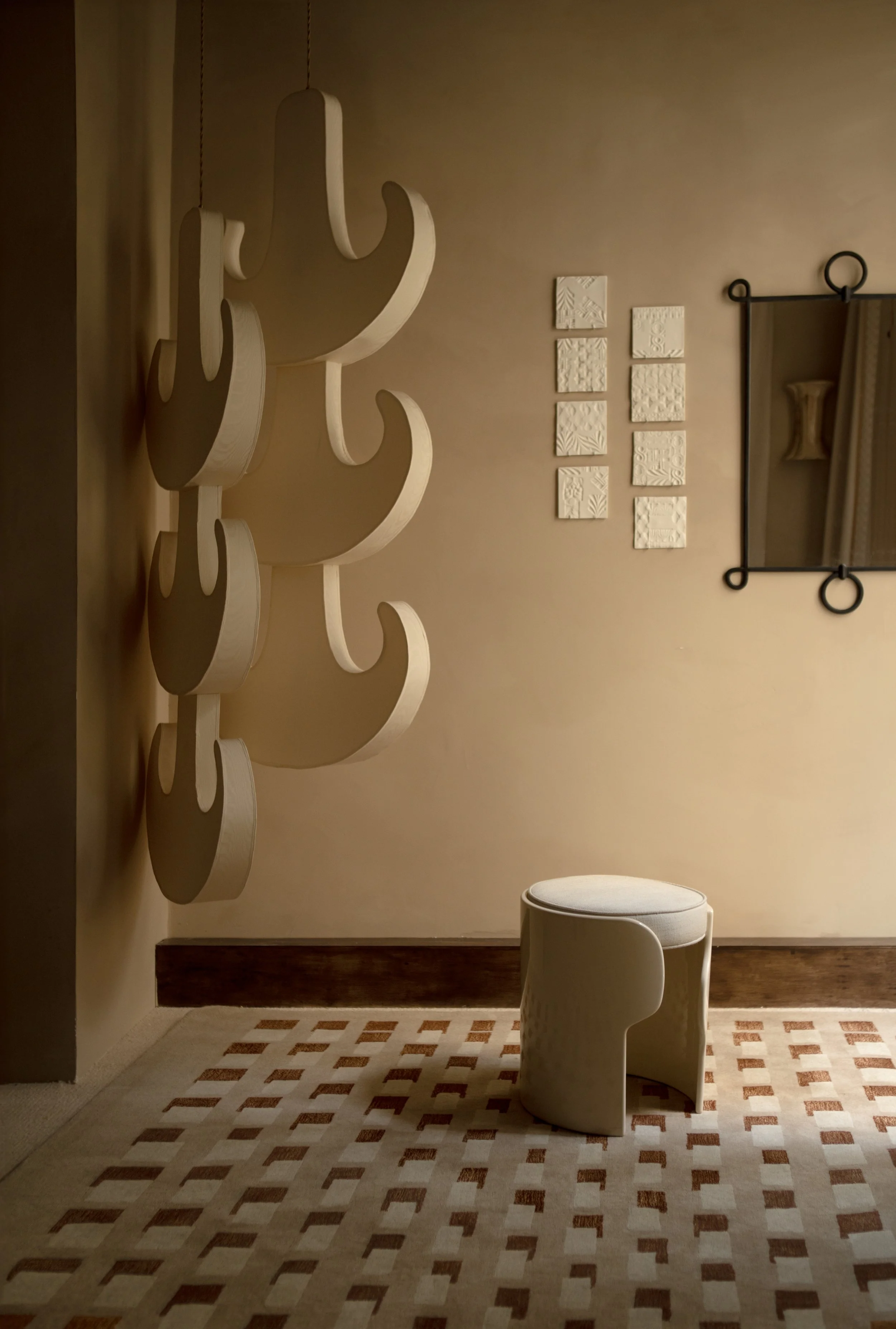 Concrétisée par 3 modèles de tapis portant chacun son univers, cette collection s'inspire des pays de l’enfance de Léa Zeroil. Elle explore des arabesques délicates, des jeux de lumière subtils et des dégradés de couleurs qui capturent la poésie des paysages ensoleillés et des ombres chaleureuses.
